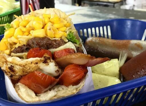 Um delicioso sanduíche que o sabor da aquela vontade de quero mais.e nosso sanduíche e composto com os seguintes ingredientes.Pao, hambúrguer caseiro 100g, ovo, bacon, presunto, mussarela, salsicha,alface, tomate, milho e batata palha